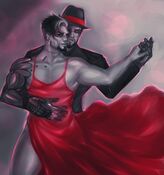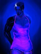 He hits the clubs regularly where he works as a DJ and occasional Pit Fighter, hiding half of his face behind a mask that alters his voice.