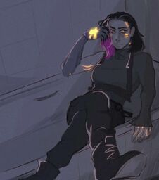 Iris is an original character created by Heartspowl for her fancomic CODE: 1R15. Many artists have contributed fanart of Iris and she has amassed community support as well as being featured as one of the main characters in the Deus Ex game mod Deus Ex: Machine God.